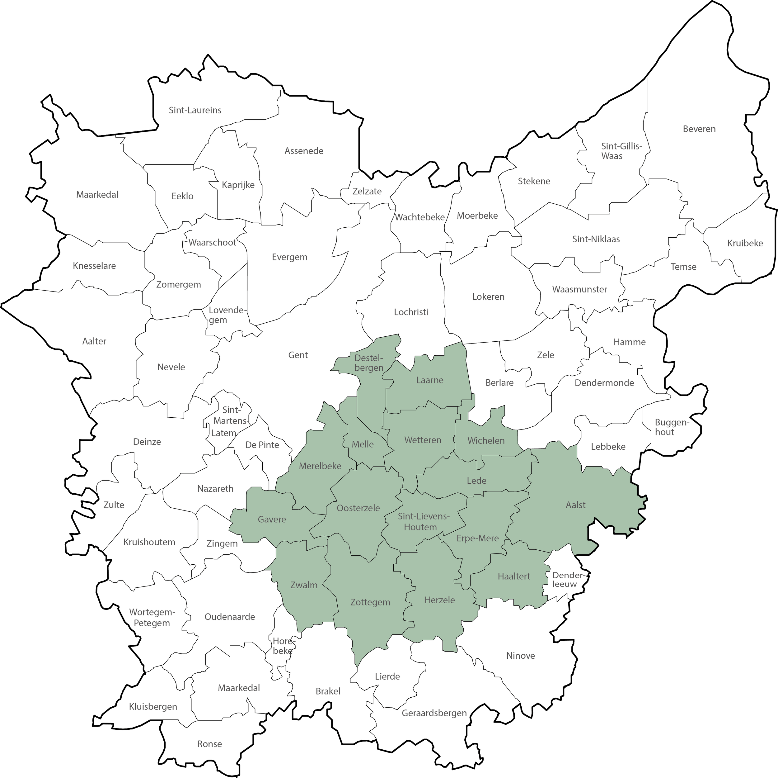 Op deze pagina vind je een kaart terug waarop je kan zien of ik ook in jouw gemeente aan huis kom. Staat jouw gemeente niet in deze lijst? Contacteer mij en samen kijken we wat mogelijk is.